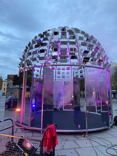 For Armin Guerino's and Gerhard Fresacher's dome installation, I developed a generative sound work that brings texts by the Austrian authors Ingeborg Bachmann and Gert Jonke into context with each other. The sound installation is inspired by Bachmann's frequent use of the topic transientness and Jonke's concept of Language as Music.